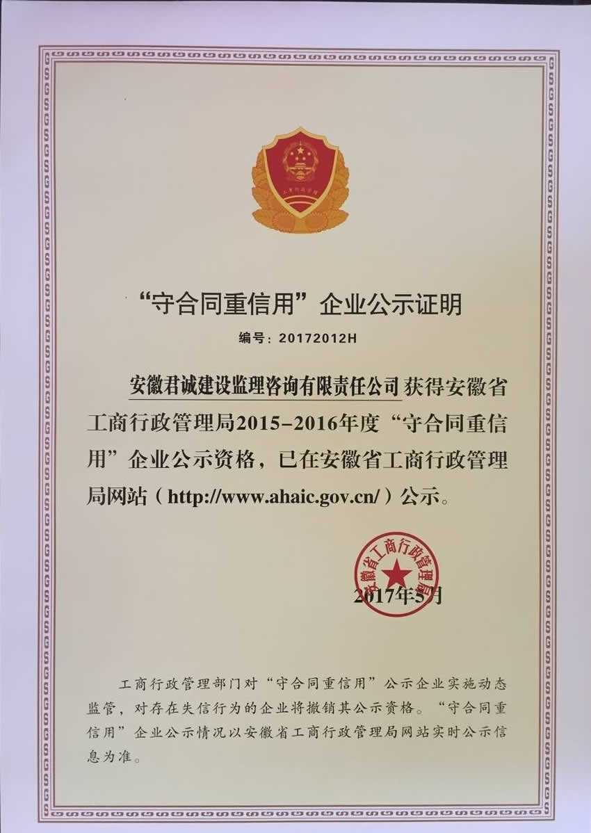 热烈祝贺安徽君诚项目管理有限公司获批“房屋建筑工程”、“市政公用工程”甲级监理资质!