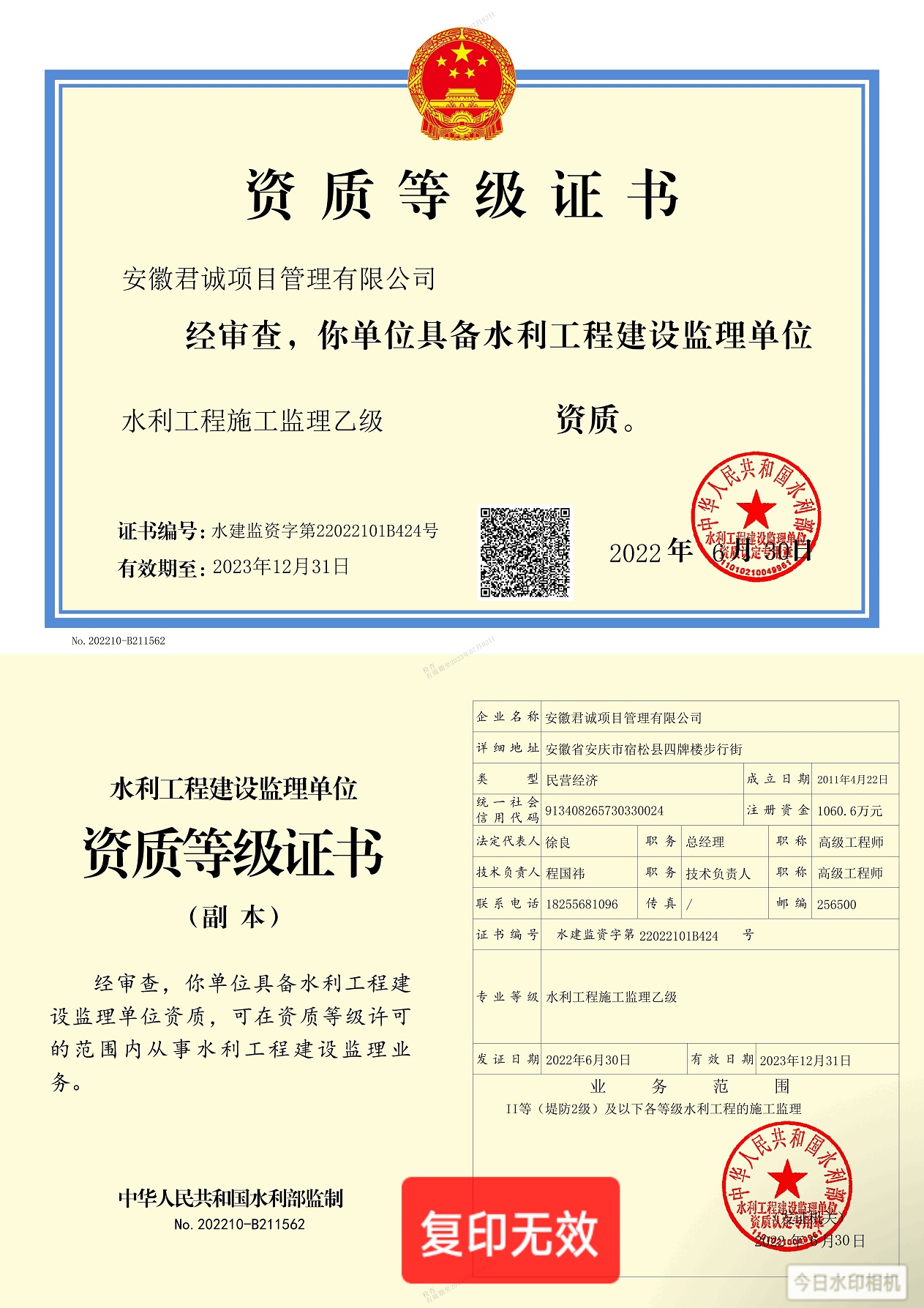 水利工程监理资质证书